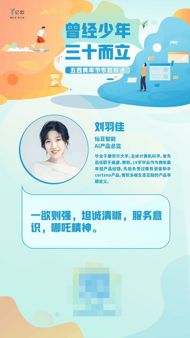 | 96年的刘羽佳,24岁生日刚过去不久。作为AI产品总监,她带领的团队中,半数是80后。 “我比96年要老成很多。”刘羽佳高一结束时,父亲提议她去美国念书,从此刘羽佳的少女时代仿佛被按了快进键。19岁康奈尔大学毕业的刘羽佳,今年已是她工作的第五年。 “中国有很多机会” 又是一年五四青年节。 百年前,北洋军阀统治下的青年学生为反对帝国主义,走向街头示威游行、罢工请愿。百年后,和平时代的新生代青年同样带着热血爱国心,将新技术从国外带回国内。 不变的是,每个年代的中国青年都冲在了“折腾”第一线。  高一结束,父亲“临时起意”的一句话,刘羽佳从“高考党”转变为“出国党”;第二年考入社区大学,一年后便转入康奈尔大学。 进入康奈尔大学这所常春藤学府,刘羽佳的心也没安定。从机械工程,到电子工程,最后到计算机,经历了三个专业的刘羽佳终于找到能够“挑战智力,有满足感”的领域。最后,刘羽佳用了三年时间,取得了计算机学位。 在微软的两年时光,刘羽佳先后待过搜索引擎Bing团队、语音产品Cortana团队、AI团队和Windows团队,这为她回国尝试智能网联这一新领域打下了基础。走南闯北,16岁的刘羽佳离开家乡山东淄博,先后在纽约州的伊萨卡小镇求学,在西雅图开启职业生涯,如今来到上海拥有自己的AI团队。 “折腾”的背后,刘羽佳的职业规划其实有条有理。 “在微软做过的三款产品结合起来就是仙豆现在正做的。”出行科技公司仙豆智能需要的底层能力和bing的数据分析技术密不可分;车载语音系统就像微软的Cortana功能;车机和手机、智能家居的互联也类似Windows和手机端的多端生态互联。 “至少在职业发展的头十年,希望做出一个东西,能够看到它的结果和影响。”刘羽佳坦言这是回国很大一部分原因,“我比较喜欢折腾,中国有很多机会。” 谈到自己现在和过去的变化,刘羽佳表示以前在学校,受精英教育思维的影响,唯一的目标就是好成绩。但步入职场后,遇到前所未有的困难和挑战,明白很多事情不能量化。 “近年来,很大的改进是接受自己不完美。”刘羽佳谈及自身变化感触地说道。 “团队里的人都是我的宝宝” 五年的工作经历使得刘羽佳应对职场已十分“老成”,但在车联网这个新兴产业,刘羽佳又拥有年青的思想。 刘羽佳坦言,她所在的AI产品团队,是这个行业的核“新”。 “AI技术从成熟到落地,大家在不断摸索。有很多空间是不能被限制住的,所以我们AI团队必须要很年轻、很有活力。”95后的刘羽佳表示:“90后从小的生长环境、家庭教育,导致90后比较敢想敢做。”  刘羽佳认为年轻人不仅在AI、车联网、自动驾驶等新兴领域得天独厚。任何行业中,年轻人都是“一股清流”。 “业务上,年轻人天生获取信息的触角很多,思考力旺盛。”拥有多年产品经验的刘羽佳对此深有感受:“做产品要尝试不同的产品,思考背后原因。”天生对市场有好奇心态的年轻人,在业务上也天生也能想出更多好点子。 年轻人对于塑造积极向上的公司文化也至关重要。刘羽佳认为,年轻人有拼劲,能打仗,希望能在年轻的时候折腾出一点成就来,带动整个公司的氛围。 刘羽佳认为女生作为管理者有先天优势,“我真心觉得团队里的每个人,无论是80后还是90后,都是我的宝宝。” 北方长大、多年在外单打独斗的刘羽佳对自己的评价是“比较感性”,她直言:“我是双鱼座,天生有种触角可以察觉到团队里每个人开不开心。”这也许就是刘羽佳“hold住”下属的制胜之道。 “现在的职场都是在相互帮助与服务。基于这个原则,大家的相处就很和谐。”刘羽佳如此总结自己的管理风格。 “一起创业的人都是人生伴侣。” 被问到青年最重要的品质,刘羽佳这样答道:“一定要排优先级的话,最重要的会是‘真诚’。” “真诚”不仅指对他人真诚,也指对己真诚。刘羽佳解释道:“作为个体,先要了解自己,只有服务好自己,才能更好的服务别人。” 刘羽佳的团队文化是坦诚、有服务意识。“我需要了解团队每个人来仙豆的诉求,希望得到什么,希望做什么样的事。”深入了解团队中每个人的需求之后,刘羽佳表示能更好地帮大家实现。 这番感悟和刘羽佳的国内外两种工作体验密切相关。 五年前,19岁刚毕业的刘羽佳踏入微软。“在美国,大家非常注重work-life balance,下午五点之后、周末,没人敢联系我。大家非常注重个人的生活和工作的隔离,同事之间也不会有很多的交集。” 她坦率地说:“这和美国的文化有关,大家天生都有independent意识。” 受微软两年熏陶的刘羽佳,也以为这是职场应有的样子。然而,回国后的她,意识到职场的另一种定义。 她发现,周围共事的人可以不仅是同事,还能亦师亦友。刘羽佳所在的创业公司更是如此,人与人之间的亲密程度是以前在国际大型互联网公司所无法体会的。 “我最近有种想法,很多一起创业的人都是life partner”。刘羽佳甚至把这种关系上升到人生伴侣层面,她也彻底从work-life balance主义转变成work-life integration主义。 刘羽佳对于“亲人”给出了自己的定义:“不一定是生活中互相陪伴支持才叫亲人,工作上的互相陪伴支持、共患难的也是亲人。这也是每天这么有干劲的原因,因为和这帮人更加亲近。” 刘羽佳把“真诚”放在青年品质的优先位的原因是:唯有真诚待人待己,才会有其他的种种可能性