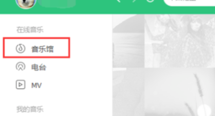 3、登录QQ音乐后,进入到QQ音乐主页面,在左侧菜单栏中可以看到音乐馆选项。