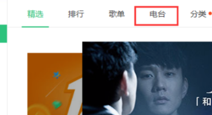 4、在音乐馆页面中,上方菜单栏可以找到电台,点击电台。