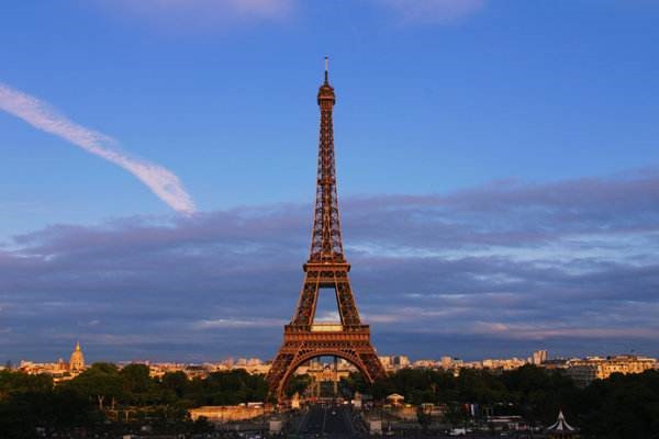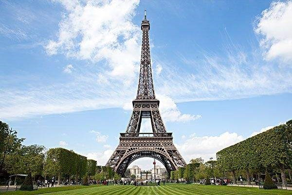 埃菲尔铁塔(法语:La Tour Eiffel;英语:the Eiffel Tower)矗立在塞纳河南岸法国巴黎的战神广场,于1889年建成,是当时世界上最高的建筑物。埃菲尔铁塔得名于设计它的著名建筑师、结构工程师古斯塔夫·埃菲尔,全部由施耐德铁器(现施耐德电气)建造。 埃菲尔铁塔高300米,天线高24米,总高324米,铁塔是由很多分散的钢铁构件组成的——看起来就像一堆模型的组件。钢铁构件有18038个,重达10000吨,施工时共钻孔700万个,使用1.2万个金属部件,用铆钉250万个。除了四个脚是用钢筋水泥之外,全身都用钢铁构成,共用去熟铁7300吨。塔分三楼,分别在离地面57.6米、115.7米和276.1米处,其中一、二楼设有餐厅,第三楼建有观景台,从塔座到塔顶共有1711级阶梯。