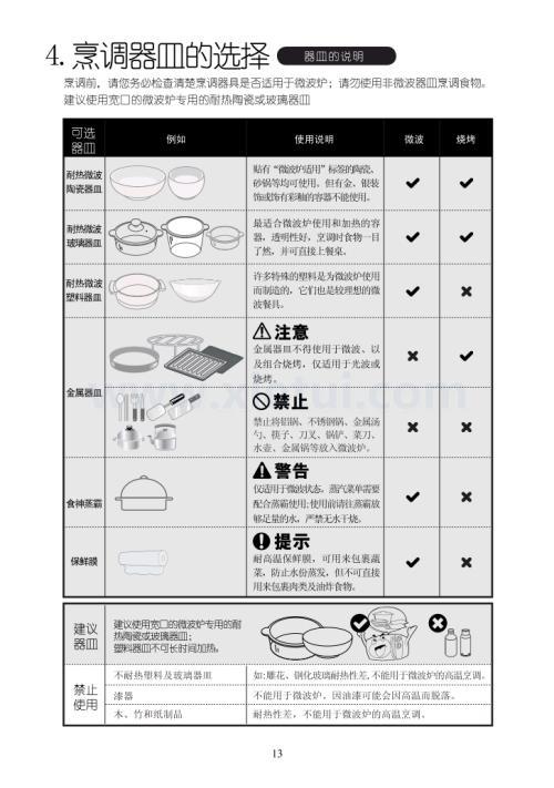 於墨臧飞兰的回答美的微波炉是很多想要购买微波炉的消费者都非常信赖的品牌,购买了美的微波炉应该如何使用呢?接下来就为大家详细的介绍一下美的微波炉使用说明,大家可以作为参考。美的微波炉是美的集团旗下产品,于1968年开始创业,生产之初以家电生产为主,发展至今已经涵盖房产、物流、金融等多个领域的大型综合性现代化企业集团,是目前中国最具规模最有影响力的白色家电生产基地和出口基地之一。 厨房电器事业部是美的集团旗下一家集研发、生产、营销为一体的现代化企业,产品覆盖微波炉、大烤箱、吸尘器、烟机、灶具、消毒柜、小烤箱、面包机等产业,是目前全球最具规模的厨房电器供应商。 美的微波电器事业部公司成立于1999年,是美的集团旗下一家集研发、生产、营销为一体的现代化企业,产品覆盖微波炉、烤箱、吸尘器、果蔬净化机、面包机等产品,微波炉年生产能力达2500万台。 在微波炉的使用和维护上也要注意以下几点: 一微波炉要放置在通风的地方,附近不要有磁性物质,以免干扰炉腔内磁场的均匀状态,使工作效率下降。还要和电视机、收音机离开一定的距离,否则会影响视、听效果。 二炉内未放烹饪食品时,不要通电工作。不可使微波炉空载运行,否则会损坏磁控管,为防止一时疏忽而造成空载运行,可在炉腔内置一盛水的玻璃杯。 三凡金属的餐具,竹器、塑料、漆器等不耐热的容器,有凹凸状的玻璃制品,均不宜在微波炉中使用。瓷制碗碟不能镶有金、银花边。盛装食品的容器一定要放在微波炉专用的盘子中,不能直接放在炉腔内。 四微波炉的加热时间要视材料及用量而定,还和食物新鲜程度、含水量有关。由于各种食物加热时间不一,故在不能肯定食物所需加热时间时,应以较短时间为宜,加热后可视食物的生熟程度再追加加热时间。否则,如时间太长,会使食物变得发硬,失去香、色、味。按照食物的种类和烹饪要求,调节定时及功率(温度)旋钮,可以仔细阅读说明书,加以了解。 五带壳的鸡蛋、带密封包装的食品不能直接烹调。以免爆炸。 六一定要关好炉门,确保连锁开关和安全开关的闭合。微波炉关掉后,不宜立即取出食物,因此时炉内尚有余热,食物还可继续烹调,应过1分钟后再取出为好。 七炉内应经常保持清洁。在断开电源后,使用湿布与中性洗涤剂擦拭,不要冲洗,勿让水流入炉内电器中。 八定期检查炉门四周和门锁。如有损坏、闭合不良,应停止使用,以防微波泄漏。不宜把脸贴近微波炉观察窗,防止眼睛因微波辐射而受损伤。也不宜长时间受到微波照射,以防引起头晕、目眩、乏力、消瘦、脱发等症状,使人体受损。 美的微波炉使用说明: 1、经过解冻食物要尽快进行烹调或者食用。 2、解冻厚的食物,要注意在时间过半的时候进行翻转,这样有利于更好的解冻。 (1)冷冻的生肉、鱼要除去包装后才能放入容器中解冻,最好是切成几份,摆放整齐。 (2)利用微波炉解冻鸡腿,要将鸡腿前段细的部分用锡纸包裹。 (3)如果像冷冻馅饼、奶油、饼干等易碎的食品,只需要用微波炉稍微解冻然后放在温室下进行自动解冻。 1、微波烹调 (1)按微波按键,选择相应的微波功率 (2)按分秒键,进行烹调的时间选择 (3)按开始键,进行烹调 (4)在运行过程中按开始/+30秒,烹饪的时间将增加30秒,火力仍旧不变。 2、微波炉制快捷营养餐 (1)按牛奶、咖啡、蒸蛋、蒸鱼、翻热面包、炖鸡、营养汤等任意营养菜单键,就可以直接显示菜单的分量,在选择菜单的时候,只要把相应的烹饪表示点亮就可以了。 (2)按开始/+30秒键开始烹饪,相应的烹饪标志会闪烁,在烧烤菜单运行到设定时间的三分之二的时候,蜂鸣器鸣叫两声,提醒开炉门进行翻转食物。 美的微波炉使用说明今天就介绍到这里,希望大家能喜欢今天的文章。 xiao5787的回答一般的使用说明提示 1. 经解冻的食物请尽快烹调或食用,不宜再放入冰箱内冷冻。 2. 解冻厚的食物,请注意在时间过半时翻转食物,以取得良好的解冻效果。 ●冷冻的生肉、鱼要除去包装放在容器内解冻,最好将其切成2.5~5厘米见方,并摆放整齐,更能改善解冻效果。 ●鸡腿前端细的部分要用铝箔包裹再解冻。 ●整条鱼的尾部用铝箔包好再解冻。 ●如冷冻馅饼、奶油、饼干等易碎食品,只适宜用微波炉稍稍解冻,取出后置于室温下自然解冻。 ●微波解冻后,请放置一段时间再加工,这是因为食品内部的解冻仍需要一个过程。 功能介绍 插上电源 微波炉同点后,蜂鸣器叫一声,程序进入演示状态。按“取消”键退回,返回待机状态。 功能介绍-常用功能 1. 微波烹调 微波烹调具有5档微波火力,周期T=22秒。 按键次数 1 2 3 4 5 火力 100% 80% 50% 30% 10% 显示 P100 P80 P50 P30 P10 接通时间(s) 22 18 12 8 4 (1) 按“微波“键,选择相应的微波功率; (2) 按“10分”、“1分”、“10秒”键,调整烹调时间,最大烹调时间为99分90秒; (3) 按“开始”键,烹调开始; (4) 在运行过程中按“开始/+30秒”键,烹调时间增加30秒,火力不变。 2. 光波脆烤/组合烧烤 (1) 按“光波/组合烧烤”键,选定组合档位; (2) 按“10分”、“1分”、“10秒”键,调整烹调时间,最大烹调时间为99分90秒; (3) 按“开始”键,烹调开始; (4) 在运行过程中按“开始/+30秒”,烹调时间将增加30秒,火力不变。 组合火力,周期T=33秒 按键次数 功能 显示 微波功率 烧烤功率 1 烧烤 G / 100% 2 组合1档 C-