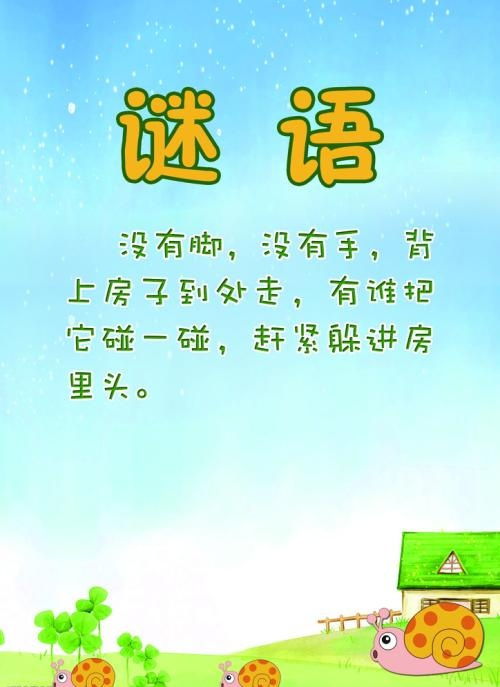 hbhbhbhb0的回答1、天没有地有,你没有他有。(谜底:也) 他字的右边就是“也”。 2、是非之地不可留。(谜底:也) 是非之地就是“土”,所以地不要土就是“也”。 3、不见他人传野闻。(谜底:也) 不见他人就是不要“人”,他字不要人就是“也” 4、池中没有水,地上没有泥。(谜底:也) 池不要水,剩下的就是“也”。 5、有马能行千里。(谜底:也) 也字加上马就是“驰”,所以谜底是也。