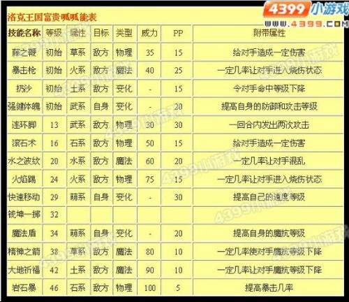 因为富贵,逍遥,少林都是呱呱进化而来的,所以技能都差不多。 希望可以帮到你 参考:4399洛克王国 林晓敏的回答:序号 425 姓名 呱呱 主属性 普通系 副属性 萌系 分布地 云烟桃源 也可以做《逃亡》的任务获得、 进化等级 目前不能进化 一月十七号好像能进化 种族 稀有宠物 种族值16级 精力 45 天赋 0 攻击 26 天赋 16 防御 28 天赋 25 魔攻 28 天赋 28 魔抗 30 天赋 24 速度 21 天赋 0  |