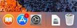 Dock是一个神奇的东西,可以把Dock理解为Windows的任务栏,在这个地方可以随意拖放你想常驻在你屏幕底部的应用。 Dock在工作的时候会对应用的状态做出标记,类似于下图:
