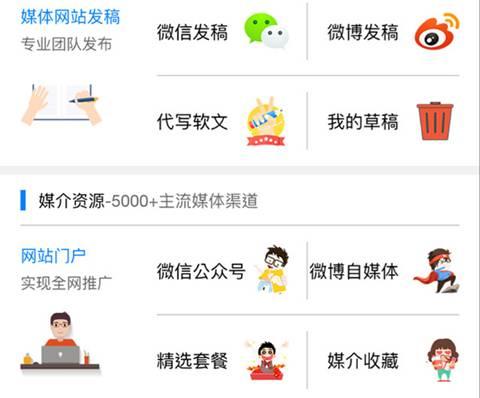 营销版块:拥有海量新闻媒体、社媒资源 办办营销推广版块,汇聚了全国50000+主流媒体资源,包括腾讯、网易、新浪、凤凰网等一线媒体以及全国具有代表性的地方性媒体。囊括新闻资讯、财经商业、IT科技、女性时尚、房产家居、汽车媒体、母婴亲子等近30种媒体类型,优质的资源成为众多中小企业全面实现精准营销的资本。 同时,为了给客户提供更优质的服务,办办(公众号:办办科技)整合了4000多家微信大号、微博大号、短视频、直播网红等社会化媒体资源,通过多渠道助力企业加快品牌建设,带动整体营销,助力提升产品销售额。