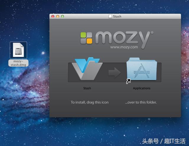 Dock: 在桌面的下方,有一排图标, 这个就叫Dock栏, 用来快速启动程序, 进入文件夹, 它的功能同时还可以停靠正在运行的程序 苹果的菜单:是一个系统菜单,用来关机,重启,升级系统。 菜单栏: 表示你目前正在运行的程序的菜单栏。 (这个设计比较好, 在Windows上如果打开3个Google, 每个Google都有菜单栏。 但是在Mac上,就只有一个统一的菜单栏) 图标栏: 这个有点类似Windows的任务栏, 上面有些系统托盘程序,输入法。 和时间 在Mac上安装文件Mac系统的安装文件后缀名是.dmg, 双击打开后,会出现一个安装对话框, 直接把图标拖拽到application中就可以了。 非常的简单