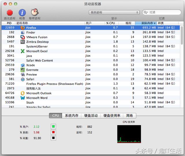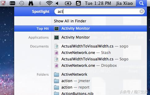 Mac中使用Activity monitor结束未响应的程序 Mac中的程序也经常卡死。 Windows中有任务管理器,可以用来查看本机运行的进程的状态, 和结束进程。 Mac中的Activity monitor(活动监视器)有差不多的功能。 1. 在Spotlight中搜索 activity, 可以快速启动Activity monitor 2. 也可以这样启动,先点Lunchpad->Utilitys->Activity Monitor