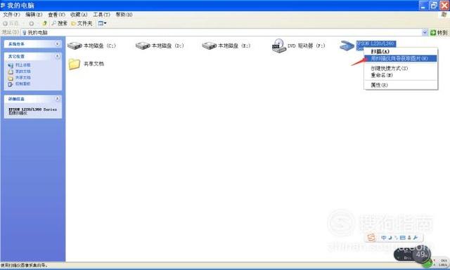 然后我们回到电脑上,点击“我的电脑”,在我的电脑里面找到该打印机名称,在这里名称为“EPSON L220/L360 Series”