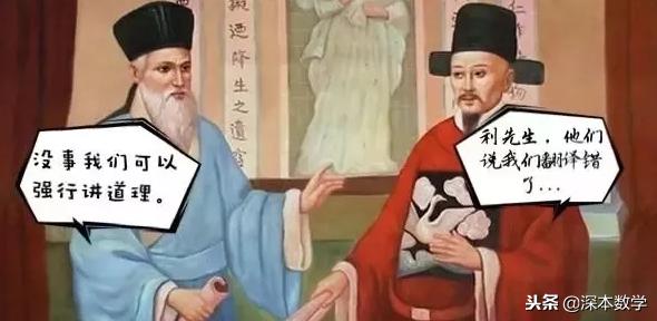 徐光启认为,“欲求超胜,必先会通。会通之前,必先翻译。”于是,他开始与利玛窦合作,把《几何原本》翻译成中文,这就成为了如今中小学数学称谓的来源。 但是很遗憾,利玛窦来的时候,带了一堆书,却唯独没有带英汉字典。于是,就出现了这么一个美丽的误会。