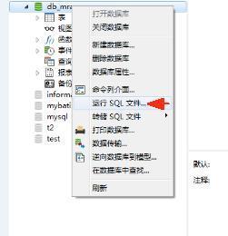选择数据库-----右击选择“转储SQL文件”-----选择"结构和数据" 。保存文件db_mras.sql文件。 2.导入sql文件。在MYSQL中新建数据库db_mras。