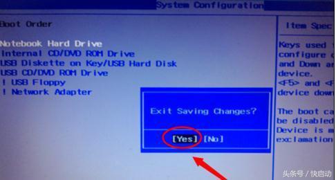如果设置好之后,选择按下F10键盘。保存并退出BIOS设置(选项 YES)
