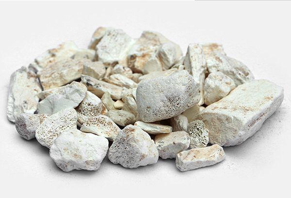 状药材可分为五花龙骨与龙骨两种:(1)五花龙骨:呈不规则块状,大小不一。表面牙白色,夹有蓝灰色及棕红色花纹,深浅粗细不同,略似大理石的条纹,表面平滑,偶有小裂隙。质硬而脆,易片片剥落而散碎,吸湿性强,以舌舐之有吸力。无臭,无味。五花龙骨质酥脆,出土后,露置空气中极易破碎,常用毛边纸粘贴。(2)龙骨:形似兽骨而较粗大,大小不一。表面灰白色