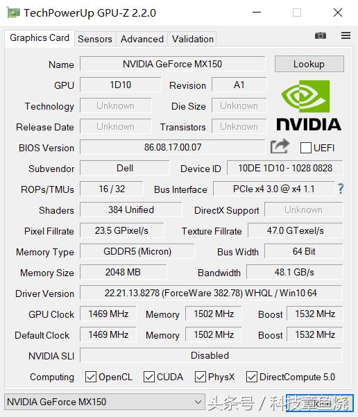 不过在查看GPU-Z的时候发现,戴尔燃7000II采用的居然是满血版MX150显卡,相比9w的阉割版,满血版的MX150实际性能也更加强悍。