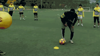 养成张开双臂的习惯 多数人踢球时并没有抬起手臂的习惯。训练时可以两手各持一个足球,带球躲过地上的标盘。持续进行这项练习,就会形成支起双臂护球的习惯。防守球员上来压迫时,你会下意识地抬起手臂保护自己。