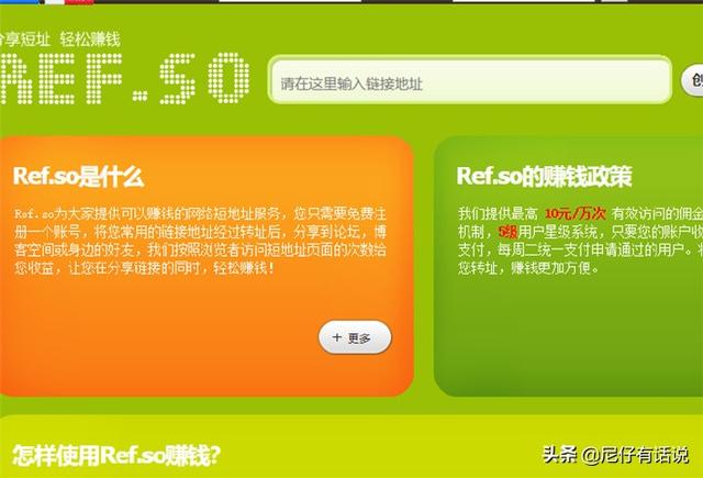 但是,我们的今天内容,不仅是要教大家怎么缩短网址,而且要教大家如何去推广短网址赚钱。 国内最热门的转址网址是REF.SO,万次有效访问点击的最高效益为10元,达到10元就可以提现,十分方便。 国外的知名的转址网址是ADF.LY,大概千次有效访问的收益在4~5美元,算是国内外收益最高的网站,但提现不能用支付宝或微信,只能用Payoneer,比较麻烦。 那么,我们个体要赚钱,那么网站是怎么盈利的呢? 通常来说,他们会通过广告联盟来盈利,那么,需要通过广告来盈利,网站本身的流量就要起得来,不然的话,盈利两字从何说起。 所以,上面几个转址赚钱的网站,也有很多站长在帮忙做推广,后期流量基本自动化,躺着赚钱。