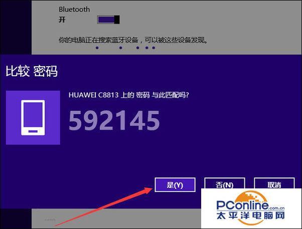 3. 点击“添加Bluetooth设备”,在打开窗口中,系统会自动搜索蓝牙设备,这时需要将连接的蓝牙设备打开,如手机或蓝牙耳机等,笔者用的是手机来连接。 4. 如图所示“出现配对准备已就绪”,点击“配对”按钮,系统会自动生成比较密码,点击“是”,同时手机也点击配对。