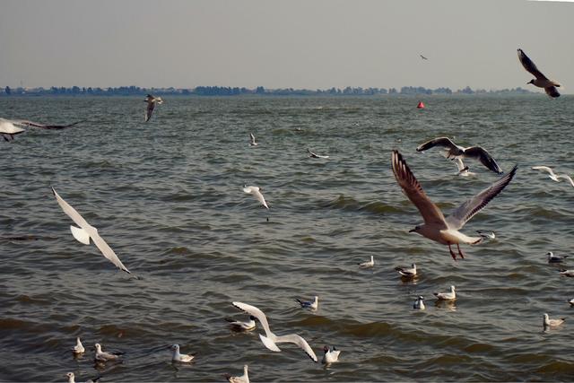 现在的滇池已经不要门票了,在公园里还能看到一些老人在垂钓和乘凉。公园的树很多,因此很凉快。滇池虽然湖水发绿,腥味有点重,但是景色非常不错,加上旁边的西山公园的帮衬,就像一副山水画般。最美的时候在傍晚,潮水涨起,拍打着岸边溅起阵阵水花,晚霞和这一切震撼着我的心。在公园里有一家出租民族服装的店铺,20元一件衣服,可以随意拍10分钟,也可以让老板帮你拍,然后买他的照片,10元一张。在公园里有可以喝茶用餐的地方,不过比较贵。滇池的水很清,很美,空气中弥漫着透人心脾的清凉,让人不忍离去。 2、石林