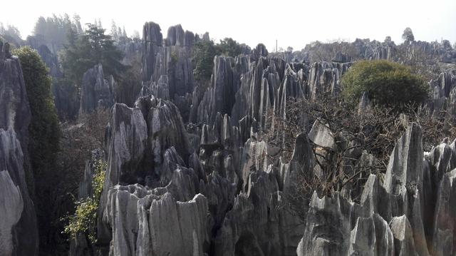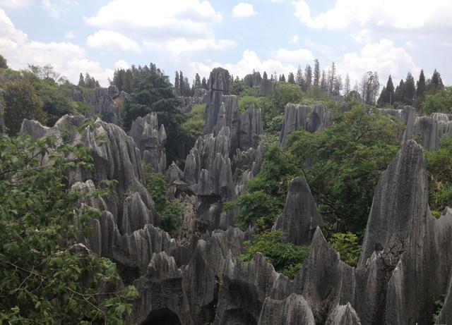 石林,素有“天下第一奇观”之称的石林风景区。坐落在昆明南边的石林彝族自治县境内,距昆明城86公里。景区由大、小石林、乃古石林、大叠水、长湖、月湖、芝云洞、奇风洞7个风景片区组成。全县共有石林面积400平方公里,是一个以岩溶地貌为主体的,在国内外知名度较高的风景名胜区。