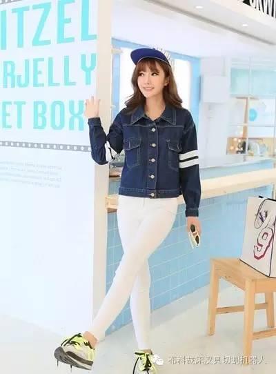 可爱的猫咪图案粉色牛仔外套,是今年的新款,绝对是潮人大爱的风格与款式,穿在身上有种甜美粉嫩的味道。内搭白色圆领T恤,下穿紧身牛仔裤,白色球鞋,彰显时尚品味。
