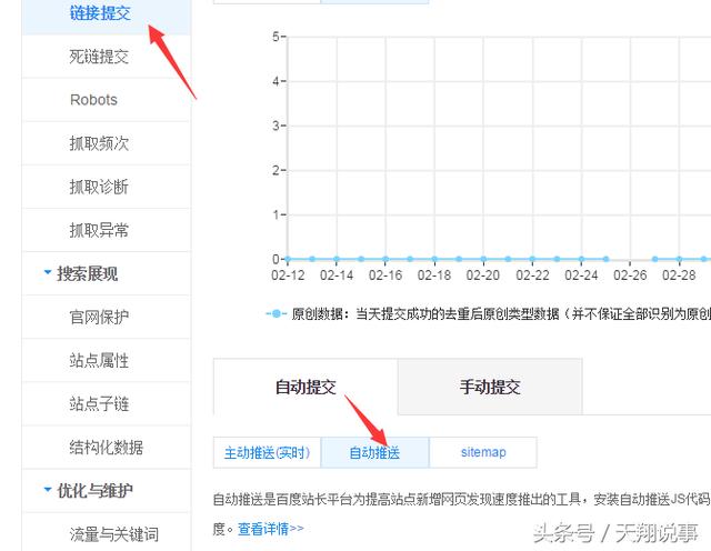 百度站长平台: 在百度站长平台上自动推送工具,自动推送一款可以让百度快速发现网站每天更新的内容,从而提上网站收录,具体操作请看下图。 第一步:登入百度站长平台--链接提交--自动推送