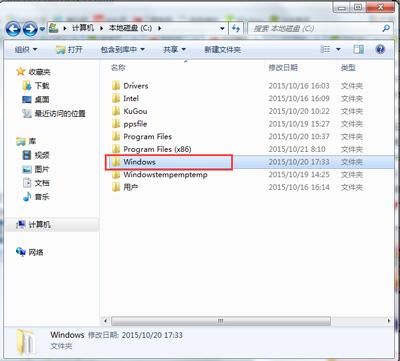 3.接着在打开的本地磁盘(c)界面,找到“windows”项,双击打开。如下图所示