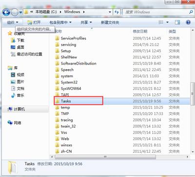 4.打开windows文件夹后,找到“Tasks”文件夹,双击打开。如下图所示