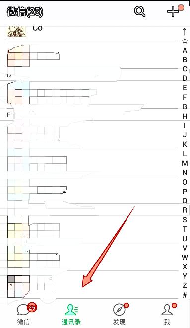 打开微信后,点击最下方的通讯录按钮,然后从中选择一个联系人,也就是想给他发红包的人。