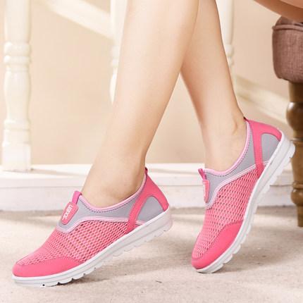 4,软底网纱女式鞋 当然有些网纱鞋是偏运动鞋一些,有些是偏凉鞋一些,当然也有是比较中间的感觉的,比如这款。创新的鞋面360度冲孔,立体透气使新鲜空气在鞋内可自然循环,反绒面料拼接 柔软有弹性,橡胶鞋底具极佳的减震作用。