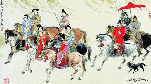 这首诗写于杜甫困居长安期间(前面的文章提到过这一时期),讽刺唐玄宗发动的边境战争穷兵黩武给百姓带来的灾难,诗的标题不用《兵车行》一类的乐府旧题,而是自创新题,直接针砭时政。在写法上,一开始摹写送别惨状,是纪事,自“或从十五北防河”开始是用征夫的口吻诉苦,作为叙述者,诗人是站在人民疾苦一边的:因为战争,千村万落荒无人烟;因为战争,土地已经久无耕种;因为战争,百姓不知拿何交税;因为战争,农业社会下的人民反而不敢生男孩(男性代表劳动力)。 这首诗中借征夫口吻说:“不敢言恨”,但是读之却无一语不饱含怨恨。讽刺杨国忠兄妹的《丽人行》也是如此,诗人仿佛只是一个通讯员——如实记录眼见的事情的原貌:“丽人”姿态的娇美,服饰的华美和饮食的精美,以及其兄的气势逼人。无一讽刺语,而描摹处语语抨击;无一声感慨,而句读间声声叹息。