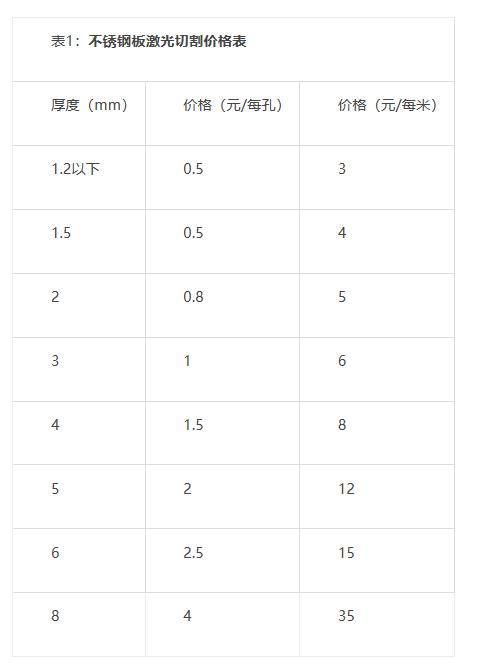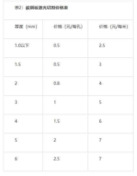激光切割价格分两大块,一就是材料费,二就是加工费。材料费很好算,计算用多少材料再乘以单价就可以了。这里不详细介绍。 激光切割加工价格怎么计算?一 就是按照小时计算,比如激光切割零件1小时多少钱? 一般每小时在400-1000元不等,地区差异也比较大,合肥,浙江,深圳地区比较便宜;北京,上海,重庆等地相对比较贵点。 这一点和您所在的区域有着明显的区分,因为所在区域的人工成本都不同,所以报价也会有所差别,但是价格浮动肯定是在这个范围之内,不过超越这个范围。 二 就是按照延米计算。 延米:就是激光切割一个钣金件割缝的总长度。延米的长度计算一般用CAD可以直接测量。 激光切割延米的计算价格公式:每延米价格=钣金厚度*1mm厚度延米价格 举个例:比如6毫米的低碳钢板的激光切割一米的价格就等于:6(板厚)×1.5(1mm价格)=9元/米。 1mm厚度延米价格根据材料不同,地区不同,价格就有所不同。比如:1mm铝板和1mm碳钢的价格是不一样的。 每延米单价每个钣金厂都不太一样,报价时核对延米数,计算出每延米的单价就基本有底了。 钣金厂根据钣金件的孔数多少还会计算激光切割穿孔费用,孔多的,延米少的,价格也不会低。 有些钣金厂是有详细价格表的,下面列出详细各种材料的激光切割价格表:(供参考)