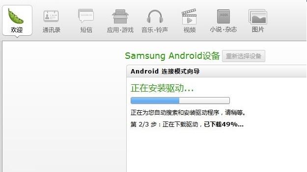04 下载驱动 如果以上的方法都没有作用,那很有可能是驱动没安装或者驱动出现了错误。 确保手机打开了USB调试,连接电脑。电脑上打开豌豆荚,豌豆荚会自动给手机下载合适的驱动。