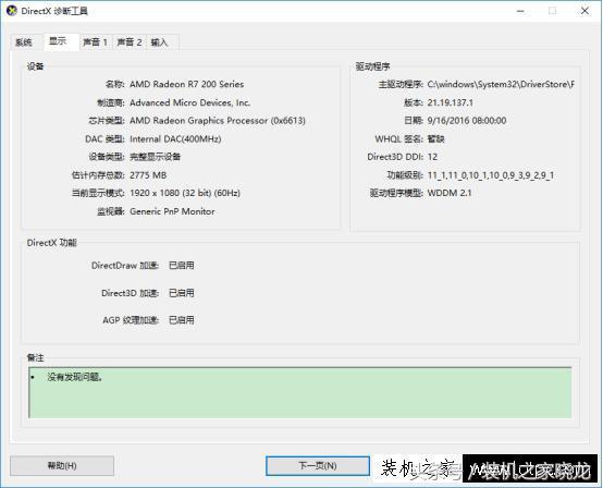 切换至显示项,可以看到显卡的相关信息,声音1、声音2和输入项可以看到关于声音和输入设备的信息。