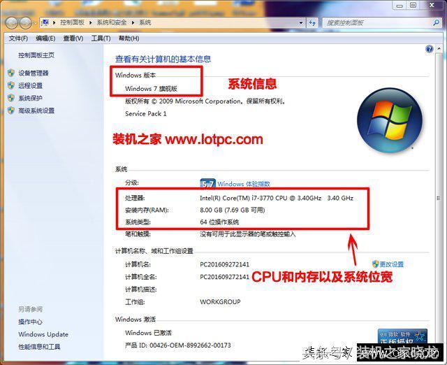 在打开的页面中就可以看到当前计算机名称、操作系统、CPU、内存等重要信息。