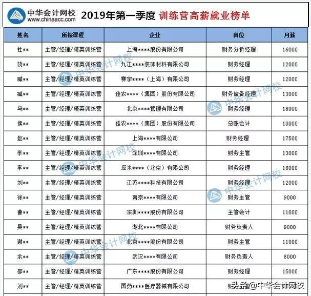 都说会计是“金饭碗”,实际上是指高端会计岗位这个“金饭碗”。为什么有的人一辈子还是“铁饭碗”,为什么有的人三五年时间就可以成为会计界的精英,如何从千万会计大军中脱颖而出,快速具备精英实力,成为高端会计人才呢?下面就告诉你一个真实的薪资现状! 012019年第一季度高薪就业榜单发布 如果说有捷径的话,那就是学习,只有通过不断的学习、训练,提升自己的证书和能力水平,才能让自己发展更快,更好!不多说了,请看我们学习的榜样!