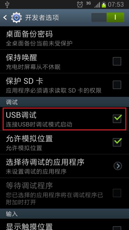 第三种破解方法: 利用助手。 如果我们的手机是开着USB调试的话,就可以进行这种方法了。以豌豆荚为例,将我们的手机通过豌豆荚进行完整备份。之后wipe下,就没有密码了,我们再利用豌豆荚恢复数据就可以了。真的是条条大路通罗马啊! 提前说下usb调试模式该如何打开吧!如果你有良好的使用习惯,不喜欢乱起八糟的地方下软件的话,还是开着USB调试吧!设置里找“开发者选项”。