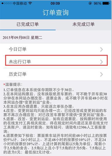 在打开的订单查询页面当中,在已完成订单的栏目下,选择未出行订单
