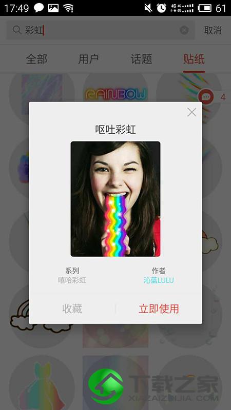 In-我的生活In记 4、找到:呕吐彩虹这一个贴纸,点击打开。选择:立即使用;