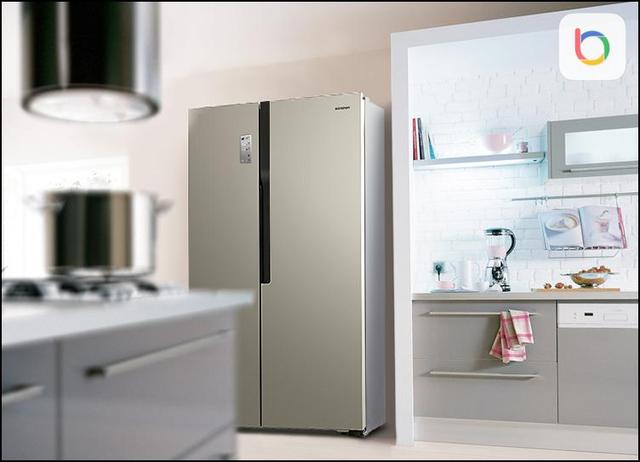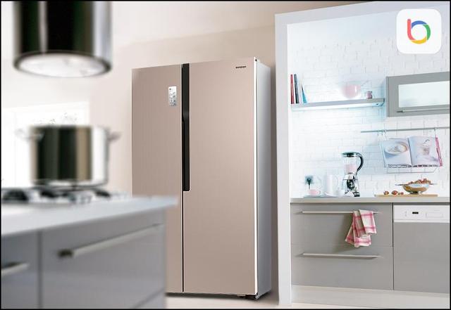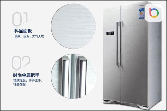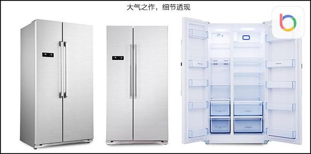 风冷定频压缩机,容量563升,其中冷冻室192升,冷藏室369升。智能调节保湿、控温,更加节能。带有MoreFresh保鲜系统,保持食物新鲜并且去除异味;独立双循环,可以起到保鲜且不串味;并且带有速冷模式,快速降温至2度,约6小时恢复常温;冷冻能力12KG/24h,1级能效,尺寸(深*宽*高)914*734*1766mm。 售价方面,苏宁易购出现过2399的低价,当然这个不一定一直有,日常售价2499较多。 (4) Hisense 海信 BCD-565WT/B 对开门冰箱,2900元