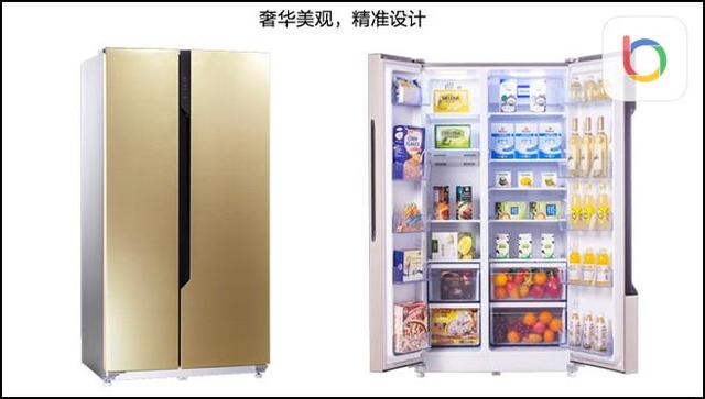 海尔对开门冰箱,香槟金色拉丝面板,三围为1790*908*738,总容量642L,冷冻室226L+10L,冷藏室406L,冷冻能力12Kg/24小时。变频压缩机,二级能耗,耗电量1.02,支持智能wifi等等。 售价方面,原价超过5000多,京东预售3999元。 (2)Haier 海尔 BCD-649WADV 649升 对开门冰箱,3899元