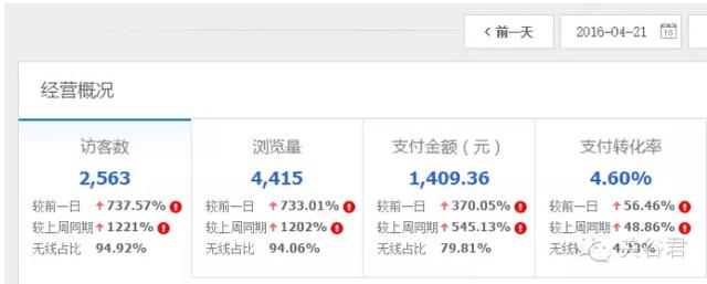 利用好,嗮图和评价,尤其是手机端的用户,最关心的问题莫过于评价了,只要把前6屏的评价做好。下单的概率不用说了,等着收钱就行。 在这个阶段,虽然我们的流量多,但是店铺的整体出于良性增长状态,这里给大家看一个真实的反馈。下图: