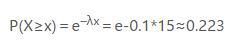 例子:某冰箱生产厂的冰箱平均10年出现大的故障,且故障发生的次数服从泊松分布,求: (1)该冰箱使用15年后还没有出现大故障的比例; (2)如果厂家想提供大故障免费维修的质量担保,但不能超过全部产量的20%,试确定提供担保的年数。 解: (1)设X为冰箱出现大故障的时间。已知µ=10年,则λ=1/µ=0.1,于是,