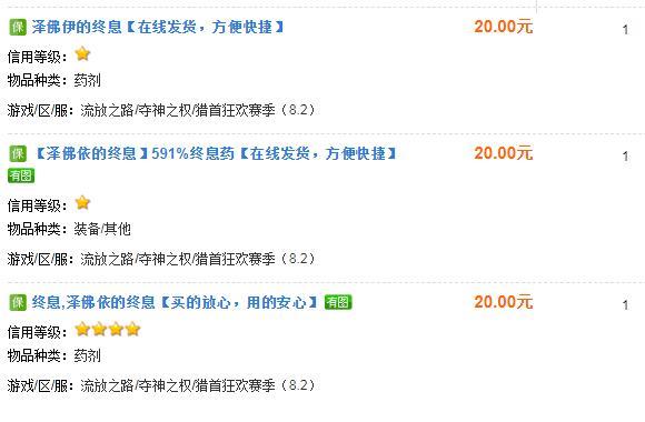 不要小瞧这一点差价,通货流通很大,经常一收就是几百个,很多玩家嫌弃集市卖的慢就出售给游戏商人。收的通货可以变换其它通货,也可以再高价卖出,反正哪个利润大就弄哪个。 第二种、倒卖游戏装备 这可不是以往的倒卖方法,在游戏里完成低买高卖。而是借用比如dd、uu、5173等游戏交易平台。
