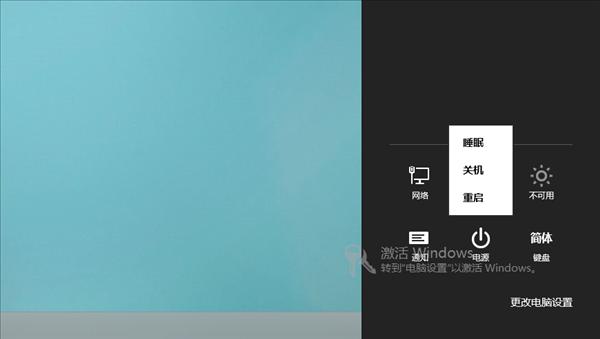 1、按组合键win+i,或是用鼠标滑至桌面右下/右上角,调出Charm菜单工具栏。然后点击“电源”就可以调出睡眠、关机、重启选项。