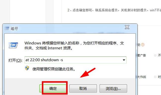 2、点击确定即可,稍后系统会提示,关机倒计时的提示,win7不会提示,但会时间到了后自动关机。