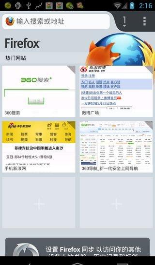 和电脑版的一样好用,不过我个人不太喜欢。我喜欢界面干净的浏览器。 上网速度更快,更省流量,耗电量更小。还有神奇的飞传,不用数据线,一键将电脑的网页和文件发到手机上。不过也会偶尔出现一些小问题,不过无关大碍。 火狐浏览器