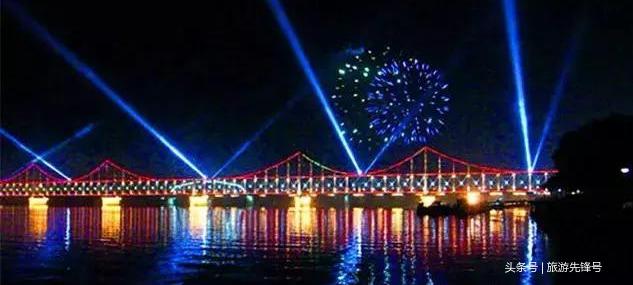 如果不想花钱上桥,在江边同样可以遥望到断桥的身影。桥附近有游船码头,坐船(约每人60元)游江欣赏断桥会有另一番感觉,还可以遥望朝鲜。江边有租借民族服装的地方,可以照相留念,价格不算贵。夜晚,靠近丹东这边的几座桥梁上会有霓虹灯闪烁,来江边走走、看看边境夜景感觉不错。