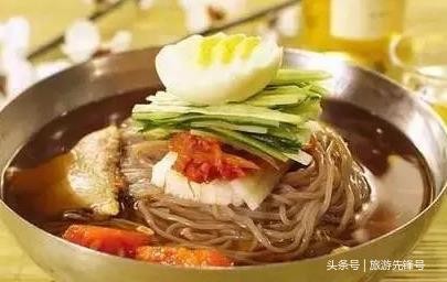 朝鲜冷面 俗称冷面,朝鲜族的传统美食之一。分荞麦面制和小麦面制两种。汤底一般用牛肉汤或鸡汤,面上铺很薄的牛肉,辣白菜、白煮蛋、黄瓜丝、梨条等。面条细质柔韧,清爽入口,酸辣适中。此外还有拌冷面,面中拌大量的辣椒酱,泡菜,黄瓜丝等配菜,冰爽无比的面条,甜酸辣爽的口感让人无法拒绝。