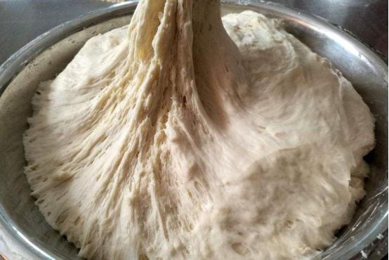 4、最后把面团放到温度比较高一点的地方进行发酵,等其发酵到原来面团的两倍,这时候的面团会出现很多的小孔。我们用手揪一小块,如果发现里面全是蜂窝状的话,那么证明面已经发酵成功。