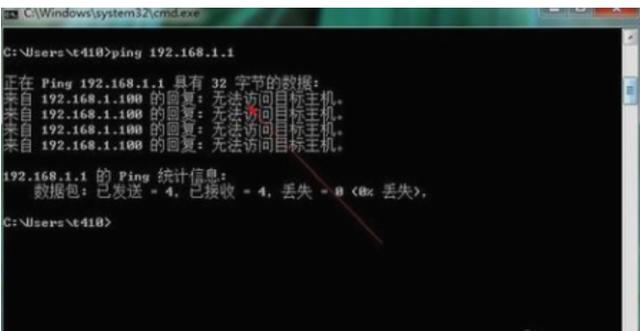 第三步,软件确认电脑已与路由器相联:在命令行里输入“ping 192.168.1.1”,路由器默认IP地址为192.168.1.1,有的路由器是192.168.0.1,路由器背面一般都有标注的,如果有信号反馈,如图出现“时间〈1ms TTL=64”表示有信号反馈,电脑与路由已联接;如果出现“无法访问……”则表示没有信号反馈,电脑与路由没有联接。