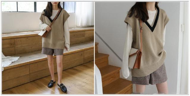 06.V领针织马甲+白色长袖T恤 学院风格的V领针织马甲,内搭白色的长袖T恤是夏末秋初最佳标配,搭配一条格仔元素的短裤,展示出你的大长腿,看似复古简约,但又很显清新的文艺范儿。